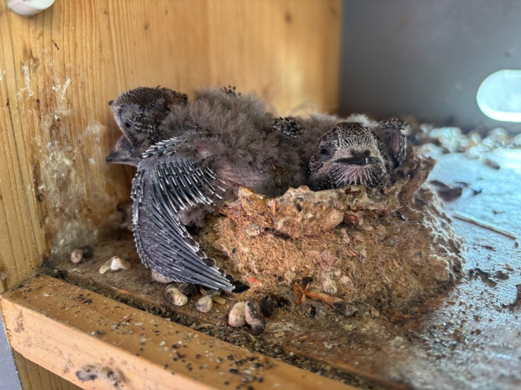 Lange mussten wir uns gedulden – jetzt hat es wieder geklappt. Am 6. Juli um 13:20 Uhr wurden wieder zwei Jungvögelchen gesichtet! Die beiden haben sich im Gegensatz zu den Jungvögeln der ersten Brut prächtig entwickelt und konnten am 12. August 2025 ausfliegen. Nachfolgend die beiden Videosequenzen, die den Wegflug des ersten Jungvogels um 9:07 und kurz danach des zweiten um 9:48 zeigen. Wir wünschen den beiden einen guten Flug in den Süden und gesunde Rückkehr nach Brugg im nächsten Jahr!